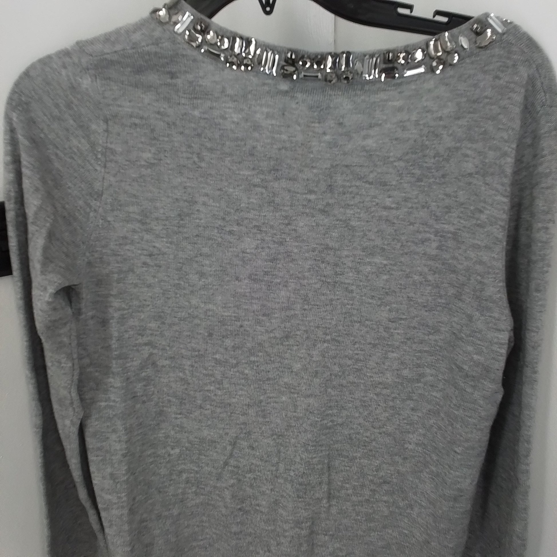 Banana Republic delivers timeless sophistication in a Women's M size, perfect for elevating any wardrobe. Gently Used condition ensures quality and value with a like-new feel. Grey color and open-front cardigan design with jeweled neckline add a touch of elegance. Sweater style crafted from premium Polyester and Wool for comfort and durability.