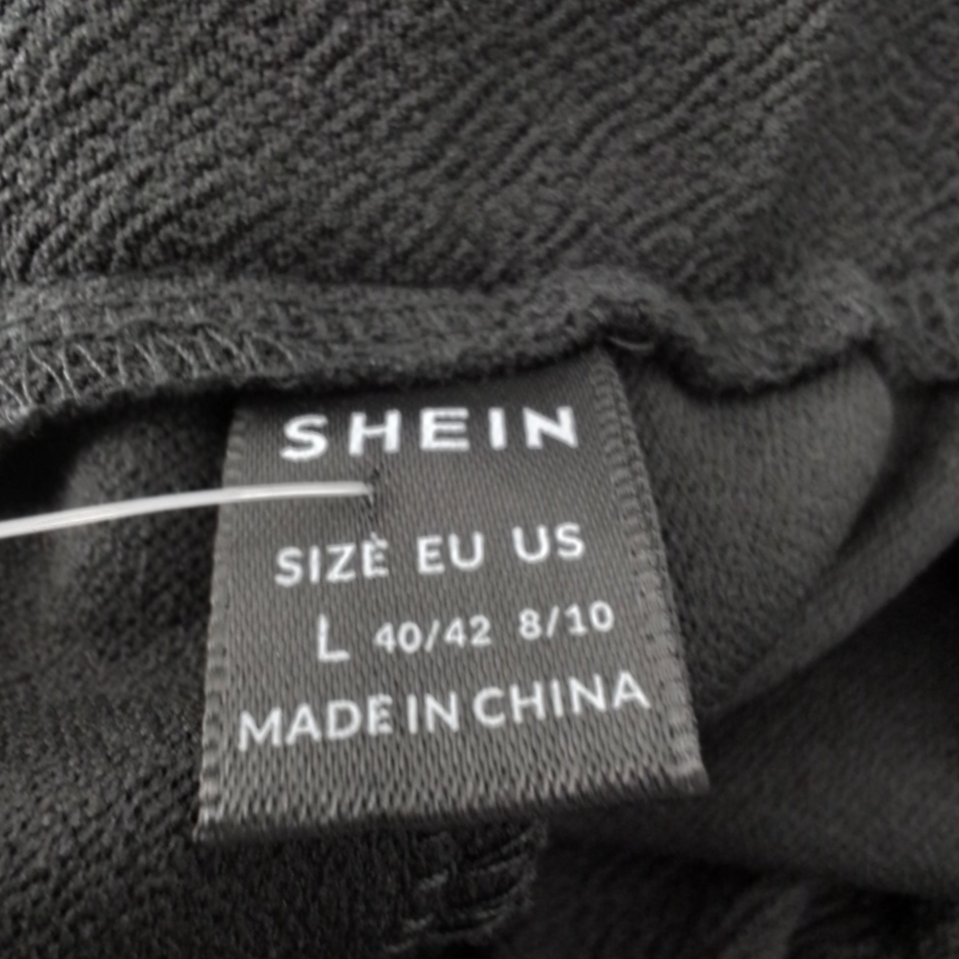 SHEIN brand, size L, black polyester pants—gently used for standout value. Business-ready style with fabric tie detail; perfect for elevating any wardrobe.