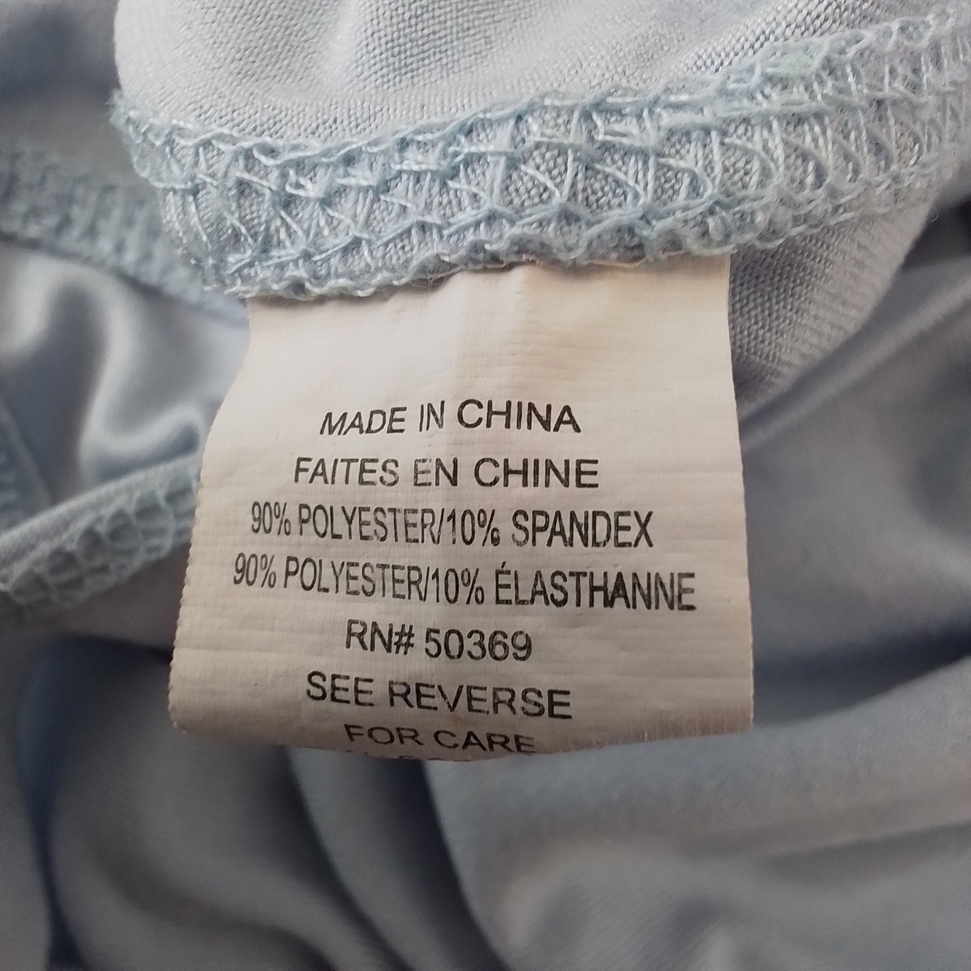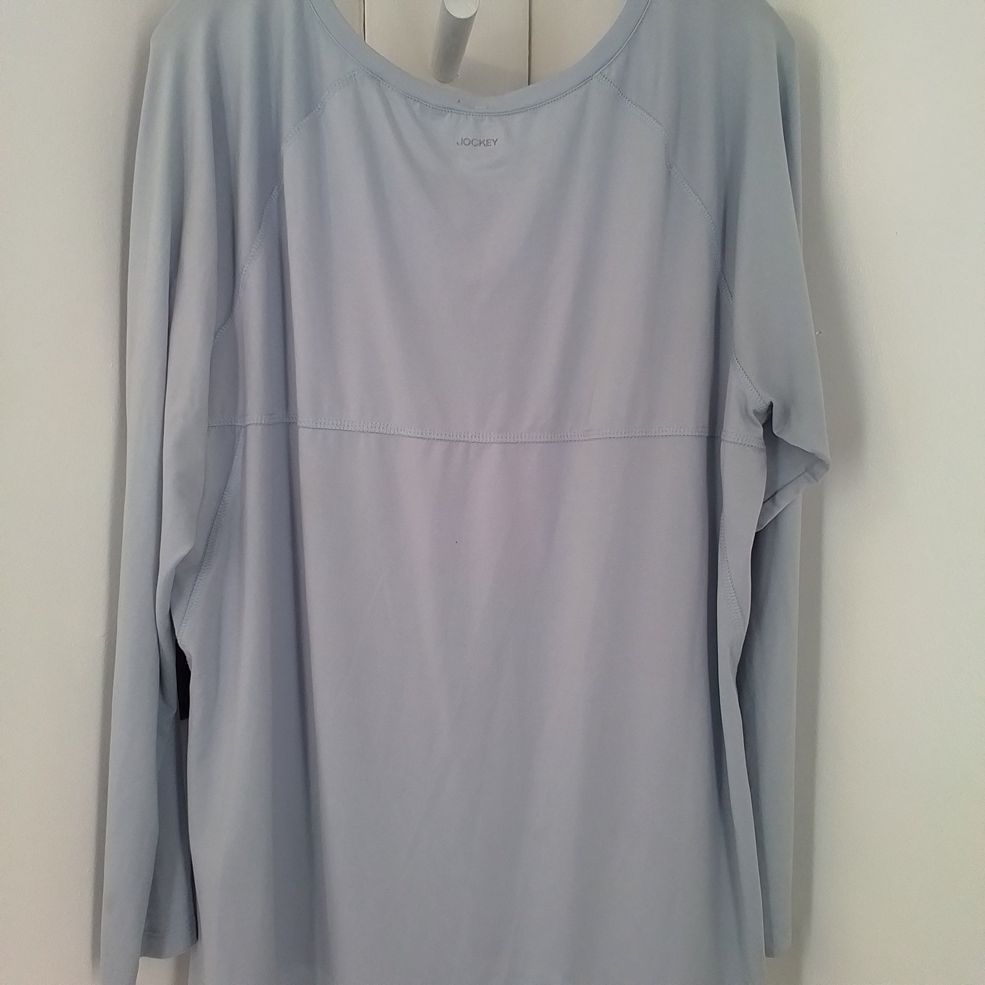 This light blue shirt is gently used, super-soft, and perfect for layering during an outdoor workout.