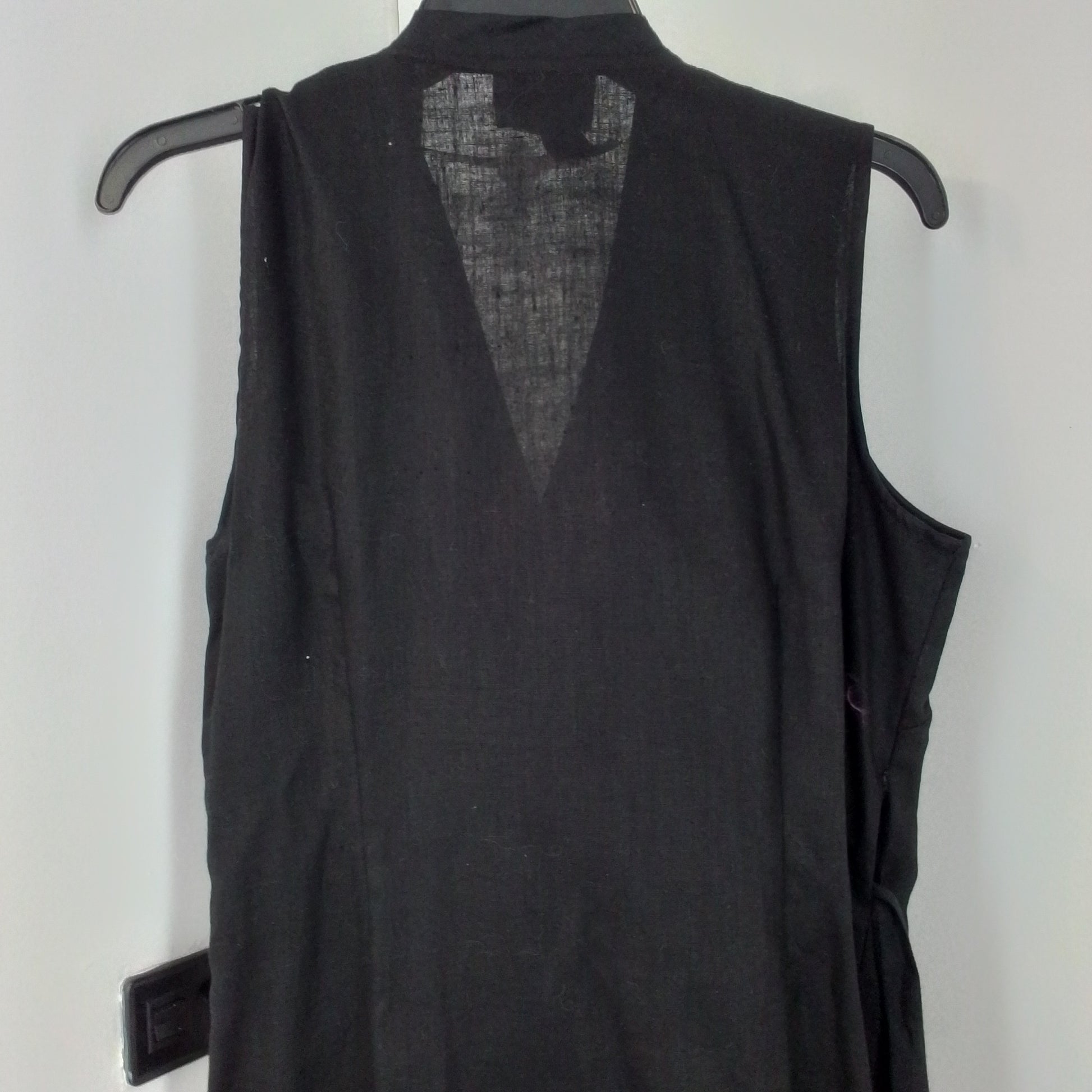 sleeveless black linen wrap dress