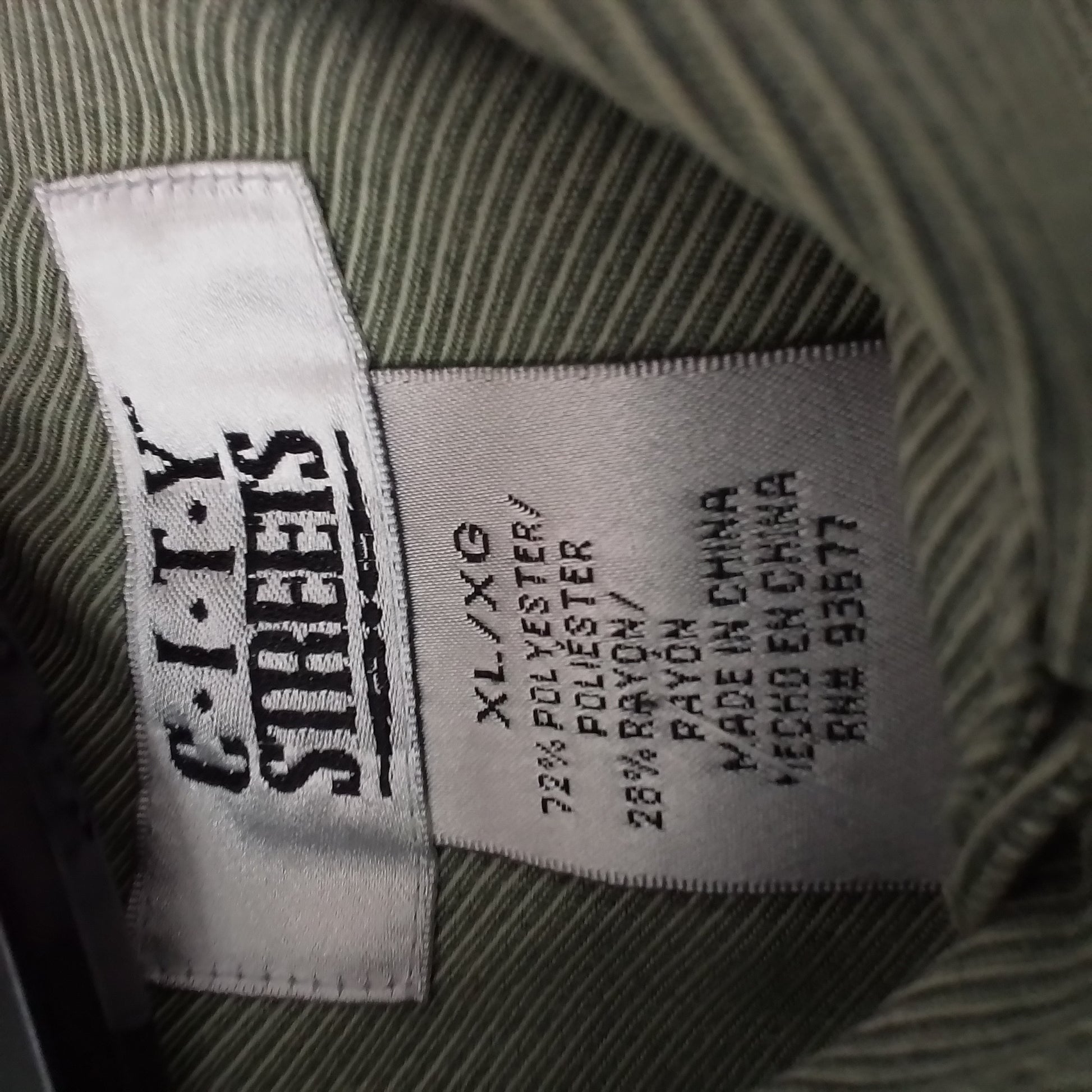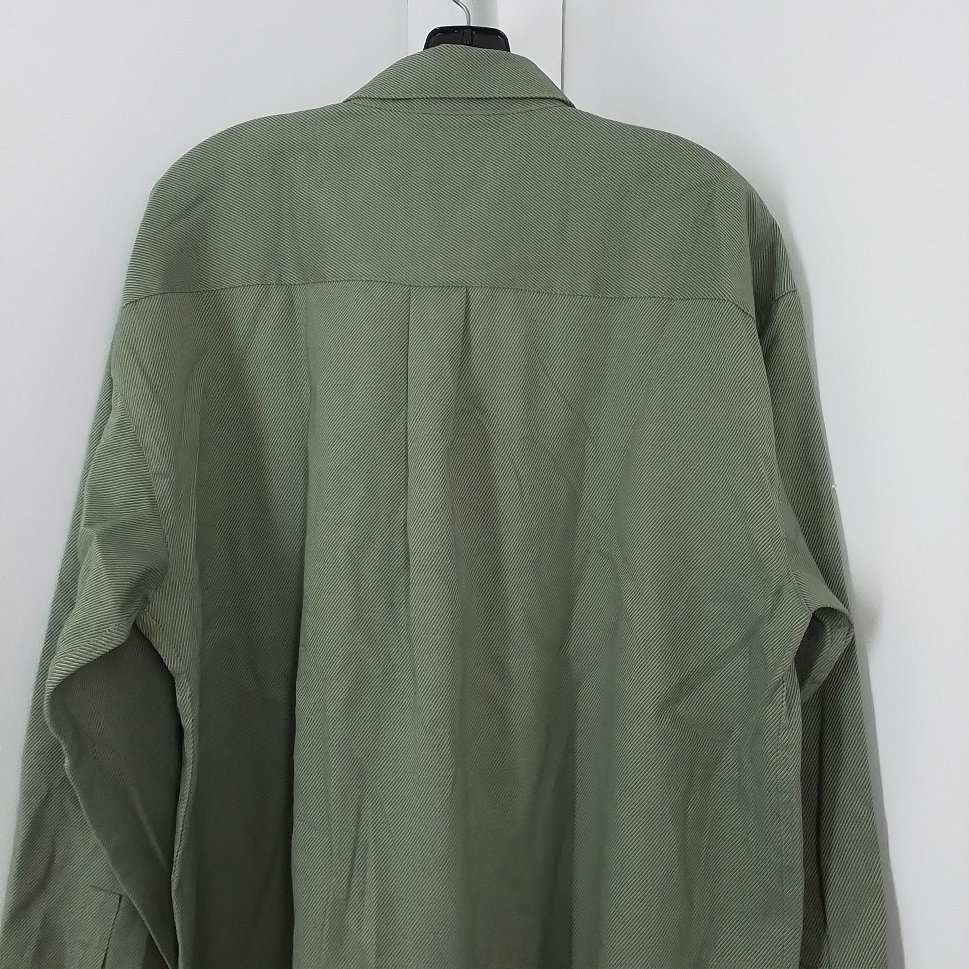 Olive green button down. Buttons on sleeve