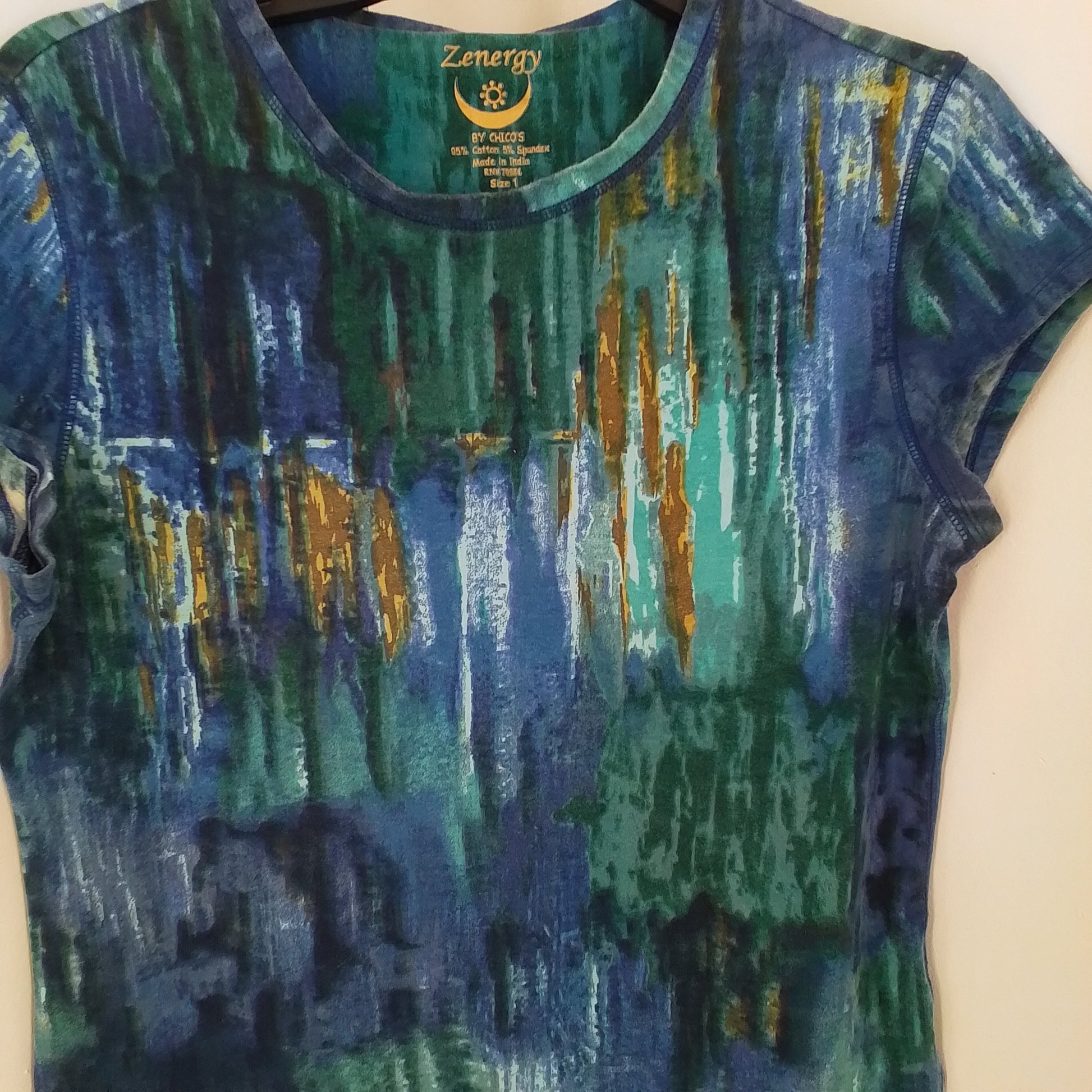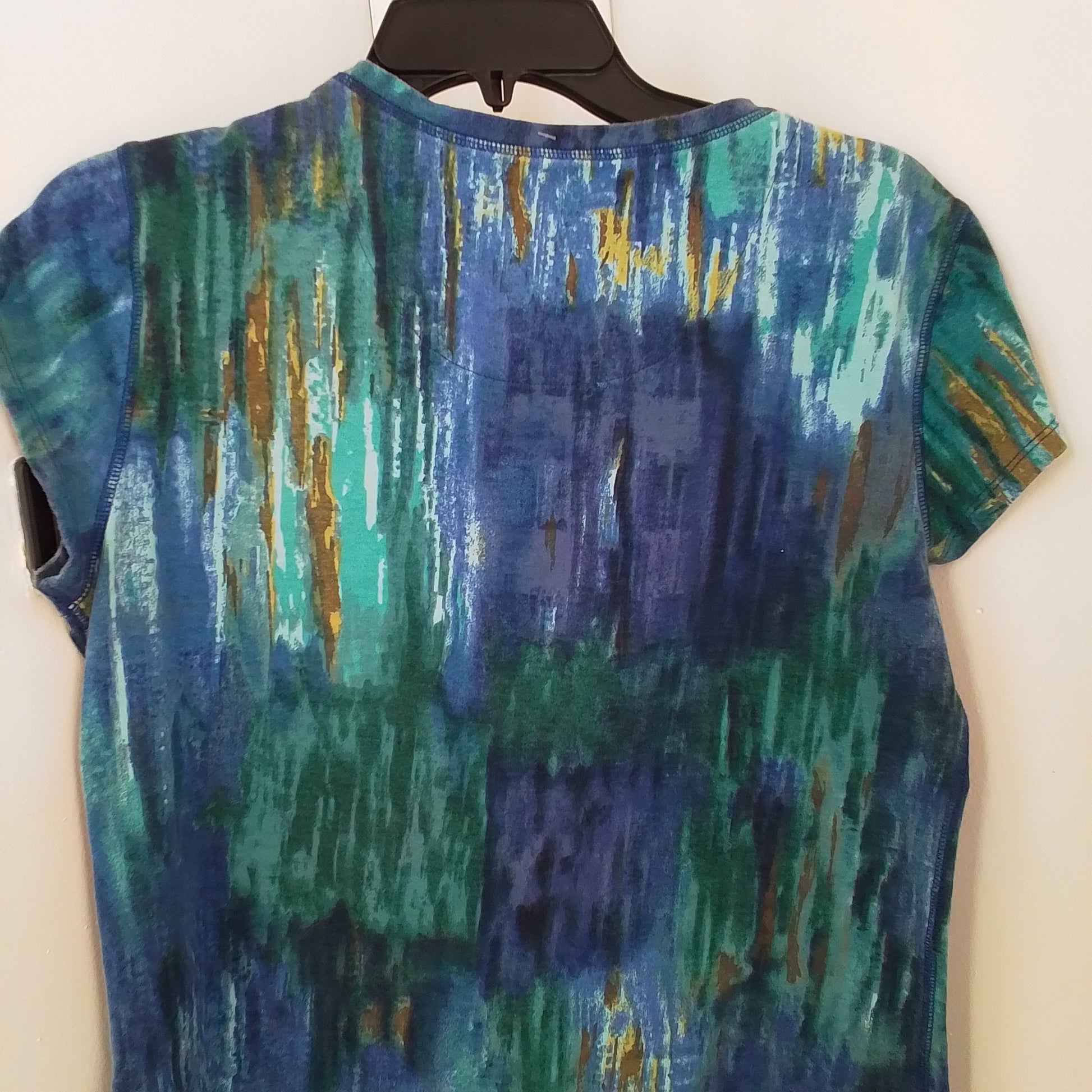 Chico's Women's Shirt in Blue, Teal, and Brown—crafted from soft cotton for all-day comfort. Gently Used condition, Casual style—perfect for effortless, everyday wear.