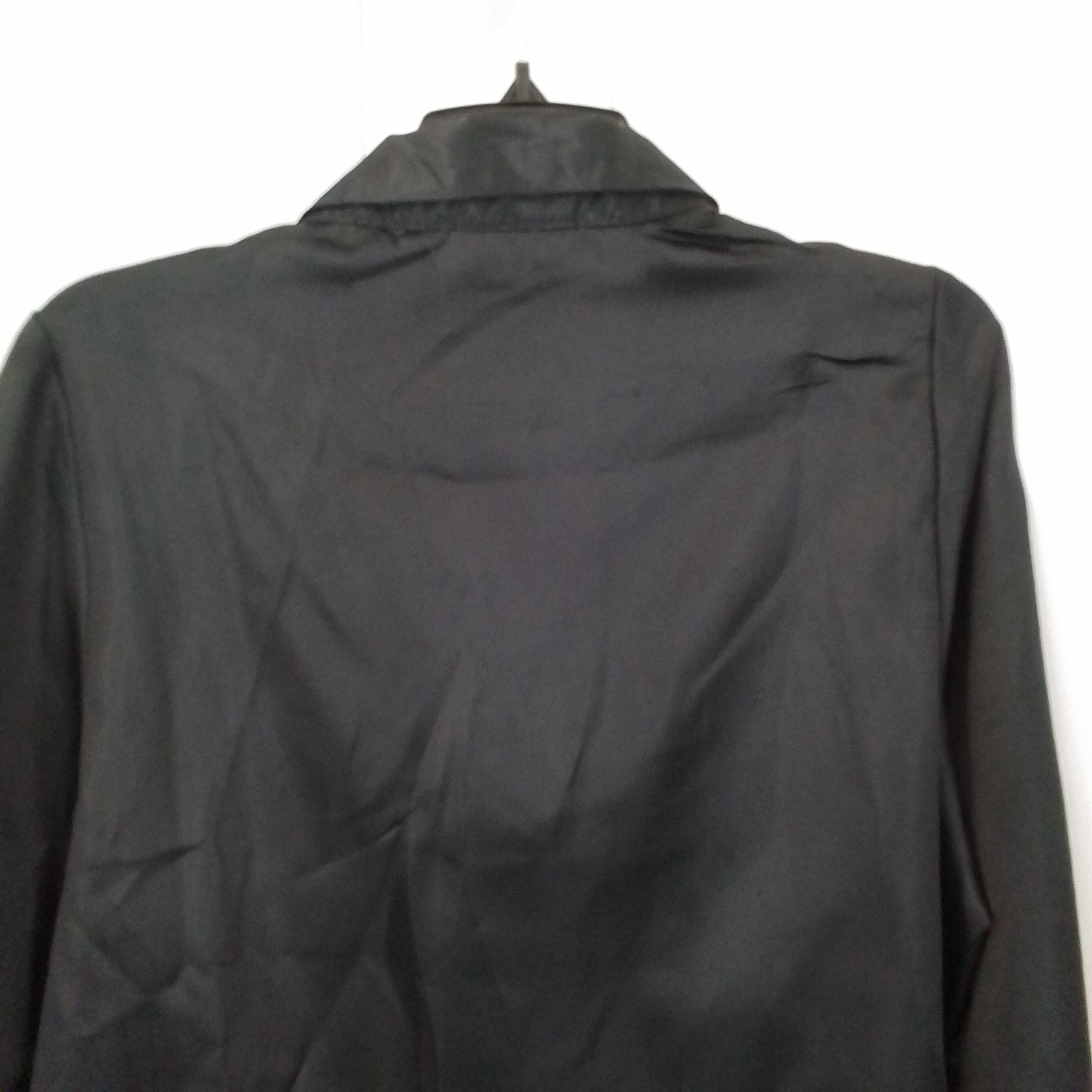 XL Black Polyester blouse, gently used, button-down silky style for standout sophistication. Business-ready look for Women—perfect for elevating your wardrobe with versatile flair.