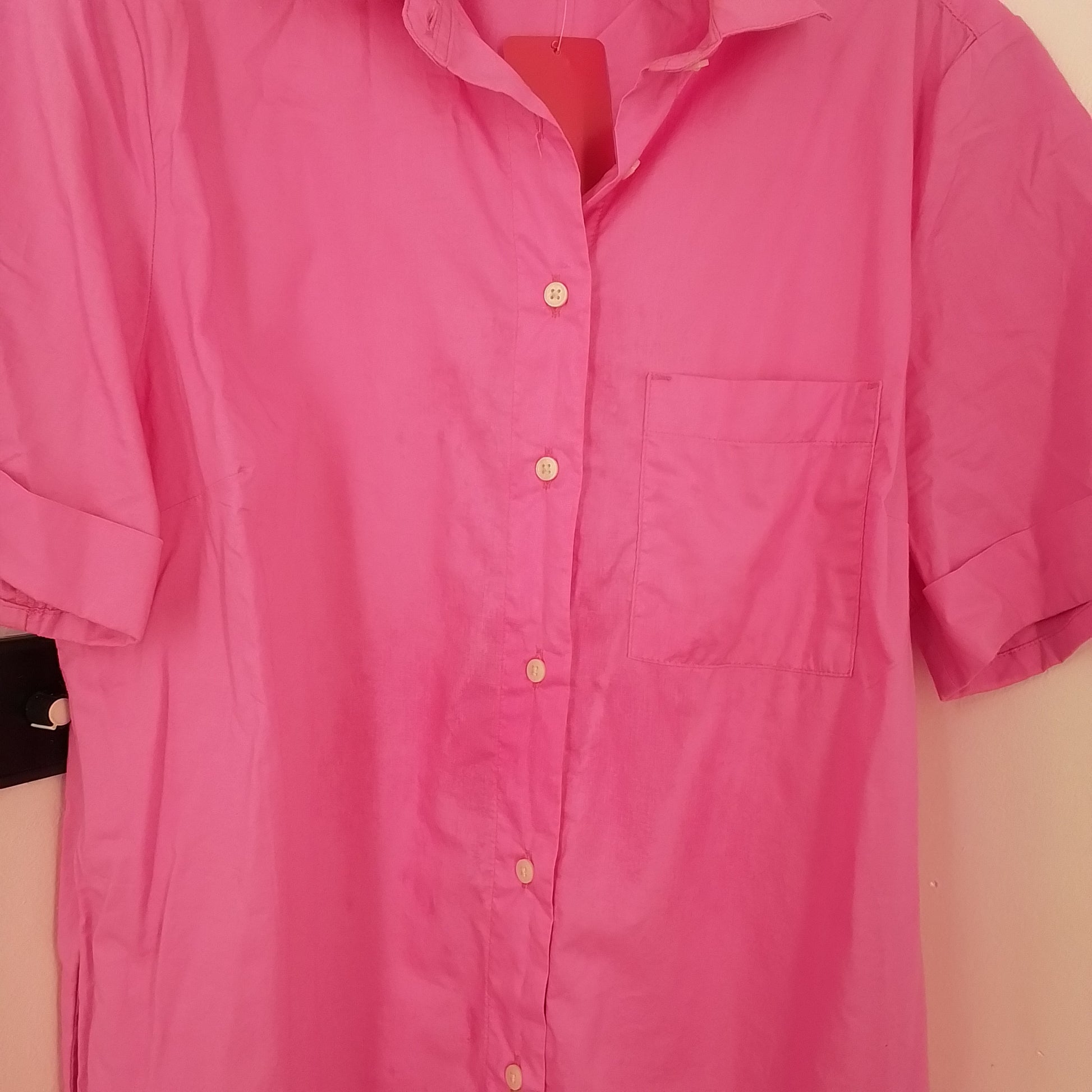 Old Navy pink cotton dress, gently used and perfect for business settings. Button-down style, medium size, designed for women seeking comfort and style.